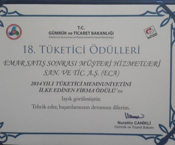 ECA – EMAR A.Ş Tüketici Memnuniyetini İlke Edinen Firma Ödülünü Kazandı…