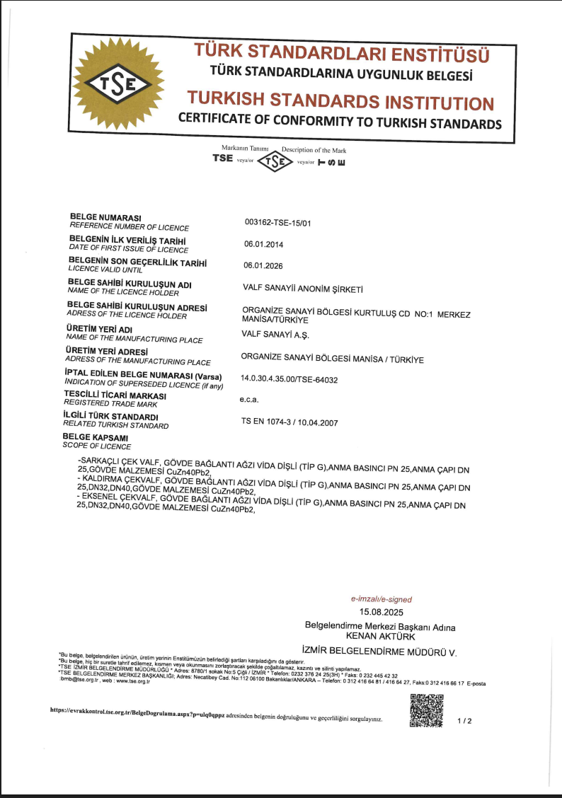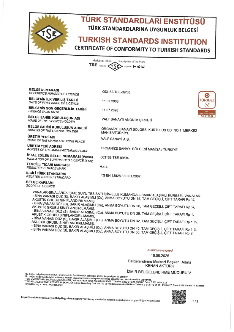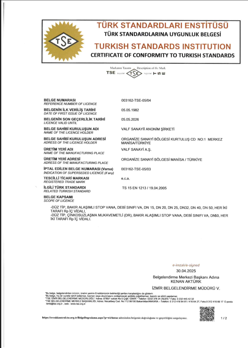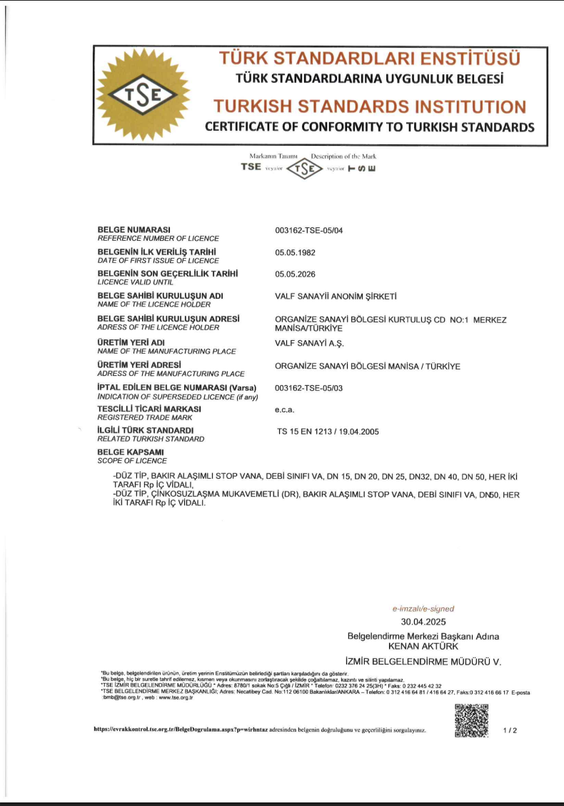 Dik Tip Tek Küreli Abone Bağlantı Vanası
