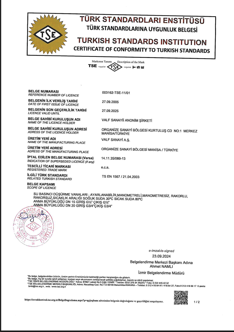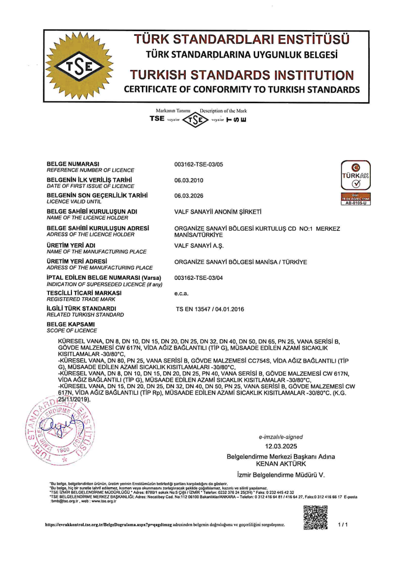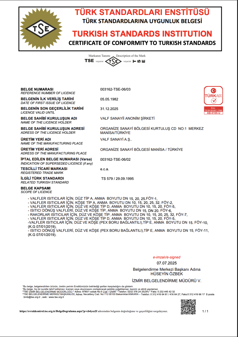 Dik Tip Tek Küreli Abone Bağlantı Vanası