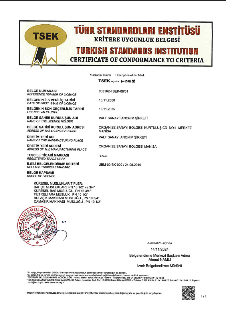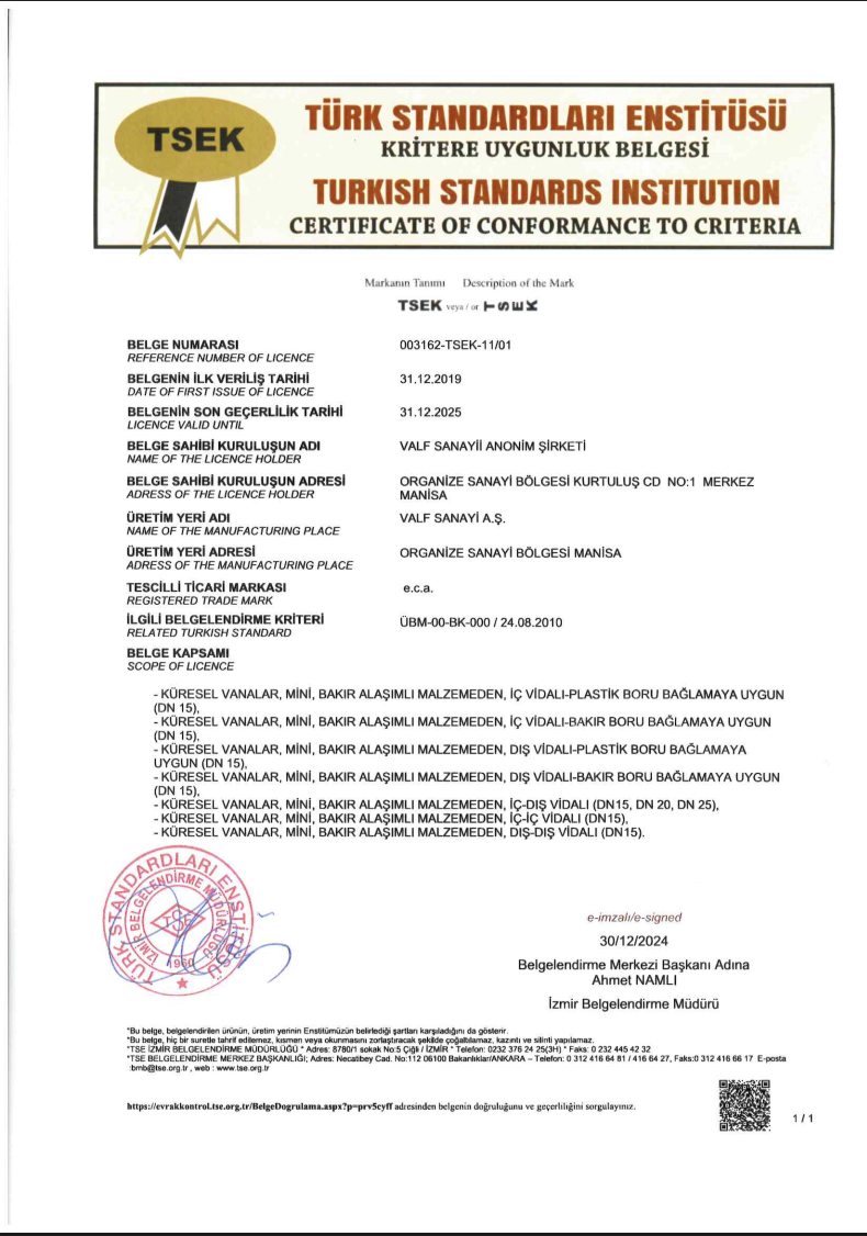 Dik Tip Tek Küreli Abone Bağlantı Vanası