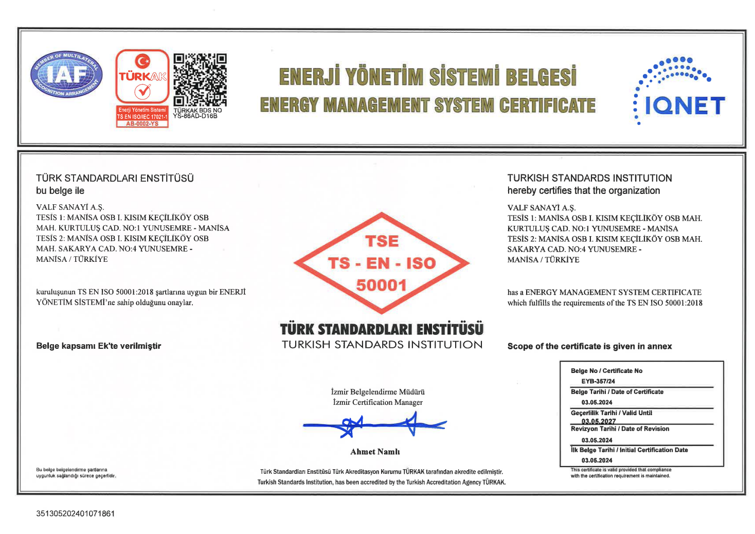 ISO 50001 2018 Enerji Yönetim Sistemi Sertifikası